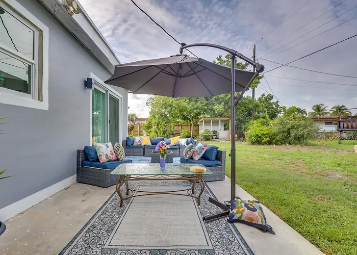 2 Mi To Hard Rock Stadium Home With Spacious Yard biedt zelfvoorzienende voorzieningen, zoals een ingerichte kitchenette en een eethoek buiten voor het gemak van de gasten. U kunt ook gebruikmaken van een koelkast, een oven en keukengerei om uw eigen maaltijd te bereiden. De accommodatie ligt op een korte afstand van Pollo Tropical, waar Spaanse gerechten worden geserveerd. Vervoersalternatieven in de omgeving zijn onder andere het treinstation Bayfront Park, ervandaan.